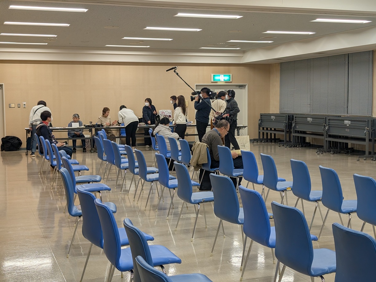 今日は練習会場に行くと、なんとNHKの取材カメラと綺麗な女性がいました。