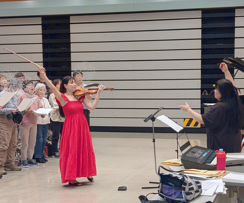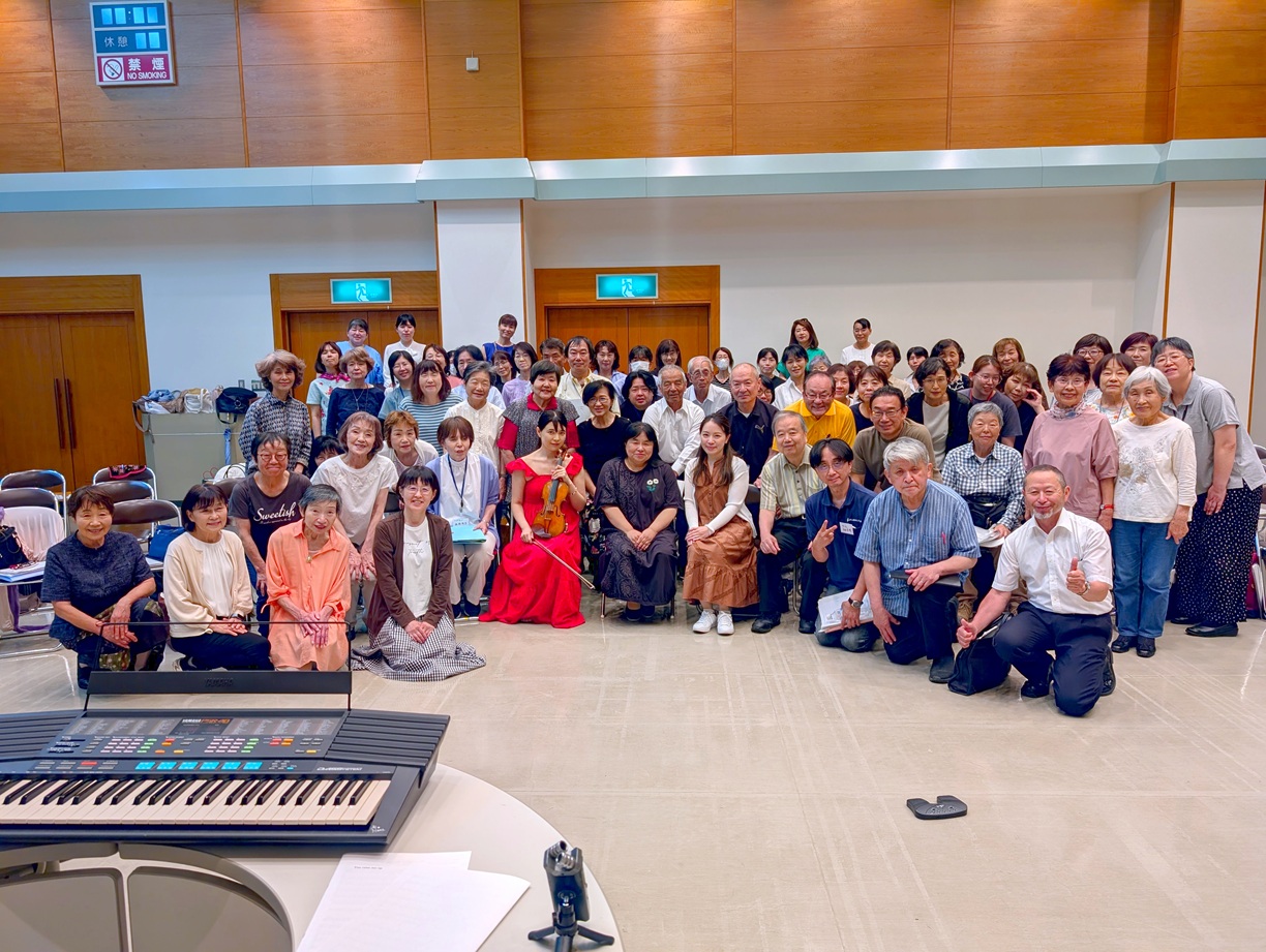 前回からあまり日が立っていない(前回は6/13)けど、なんとかかじりつくように、練習についていくみんなと写真を撮りながら歌う私。暗譜しておいてよかったと思いました。本番は譜面を持って歌いますが、やはり暗譜はしておくほうが姿勢よく歌えますし、顔を上げるだけでも自信にあふれた感じに見えるんですよね。