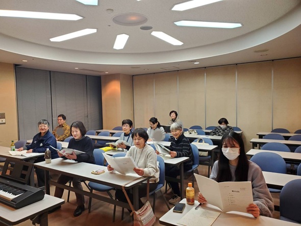 あぁ、歌詞歌いたいと思いつつも移動ドのドレミで基礎練習を行ないました。歌詞は次回以降の練習かな。