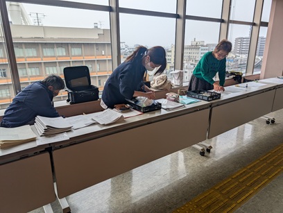 机を片づけて椅子だけにして練習会場に作り変えます!