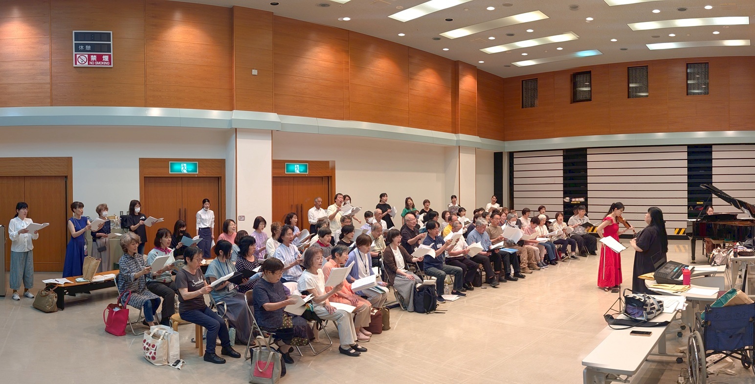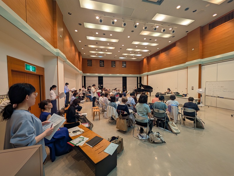 前回からあまり日が立っていない(前回は6/13)けど、なんとかかじりつくように、練習についていくみんなと写真を撮りながら歌う私。暗譜しておいてよかったと思いました。本番は譜面を持って歌いますが、やはり暗譜はしておくほうが姿勢よく歌えますし、顔を上げるだけでも自信にあふれた感じに見えるんですよね。