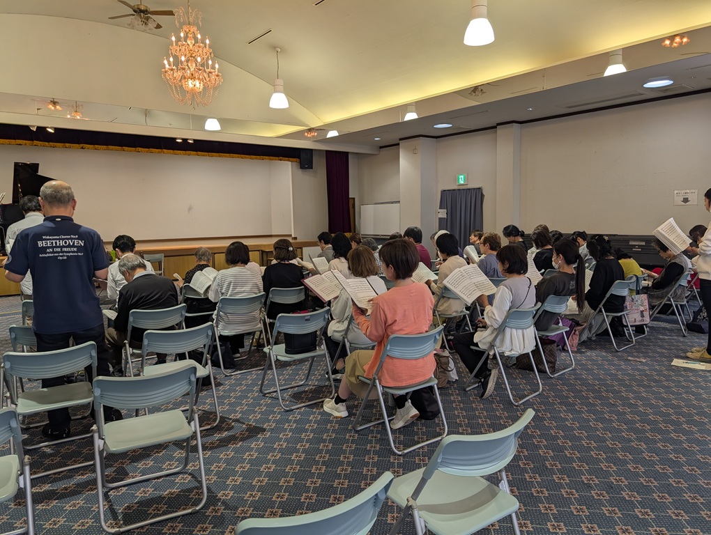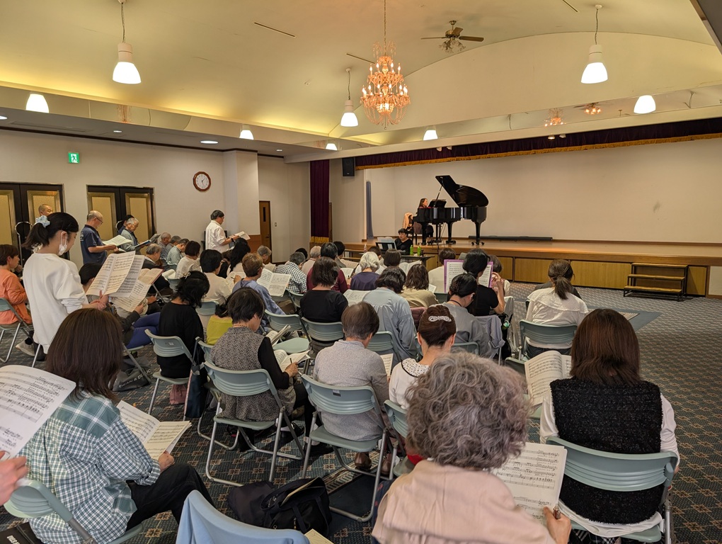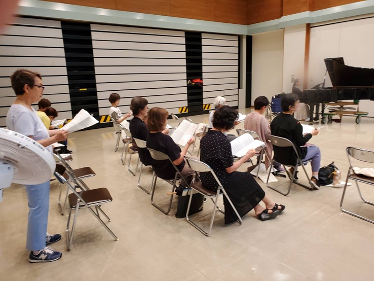 前回からあまり日が立っていない(前回は6/13)けど、なんとかかじりつくように、練習についていくみんなと写真を撮りながら歌う私。暗譜しておいてよかったと思いました。本番は譜面を持って歌いますが、やはり暗譜はしておくほうが姿勢よく歌えますし、顔を上げるだけでも自信にあふれた感じに見えるんですよね。