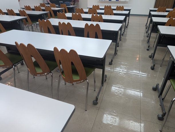 机を片づけて椅子だけにして練習会場に作り変えます!