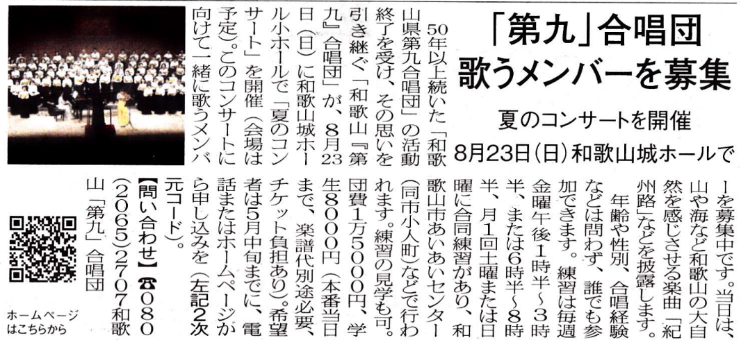 2026年3月6日のリビング和歌山に団員募集の記事が掲載されました。